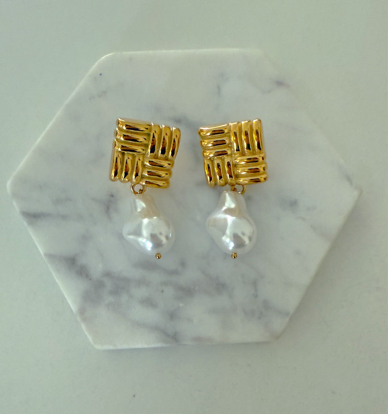 Our Coastal Pearl Earrings are a must-have accessory, perfect for the summer season! These elegant dangle earrings, plated in 18k gold, add the perfect touch of coastal casual to an outfit. Perfect for a day at the beach or a night out in the Hamptons.
