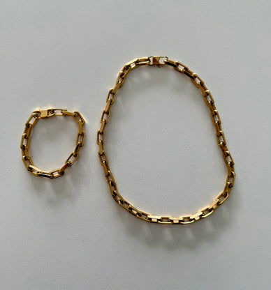 Enhance any outfit with our Quinn Necklace, a stunning statement piece made of 18k gold plated stainless steel chain links. For a polished look, pair with our matching Quinn Bracelet.